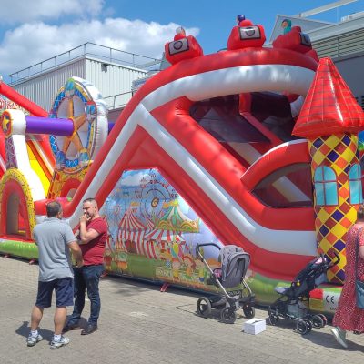Neben den klassischen Hüpfburgen bieten wir Ihnen die Möglichkeit, einen aufregenden Hindernisparcours im Jahrmarkt-Design zu mieten.
